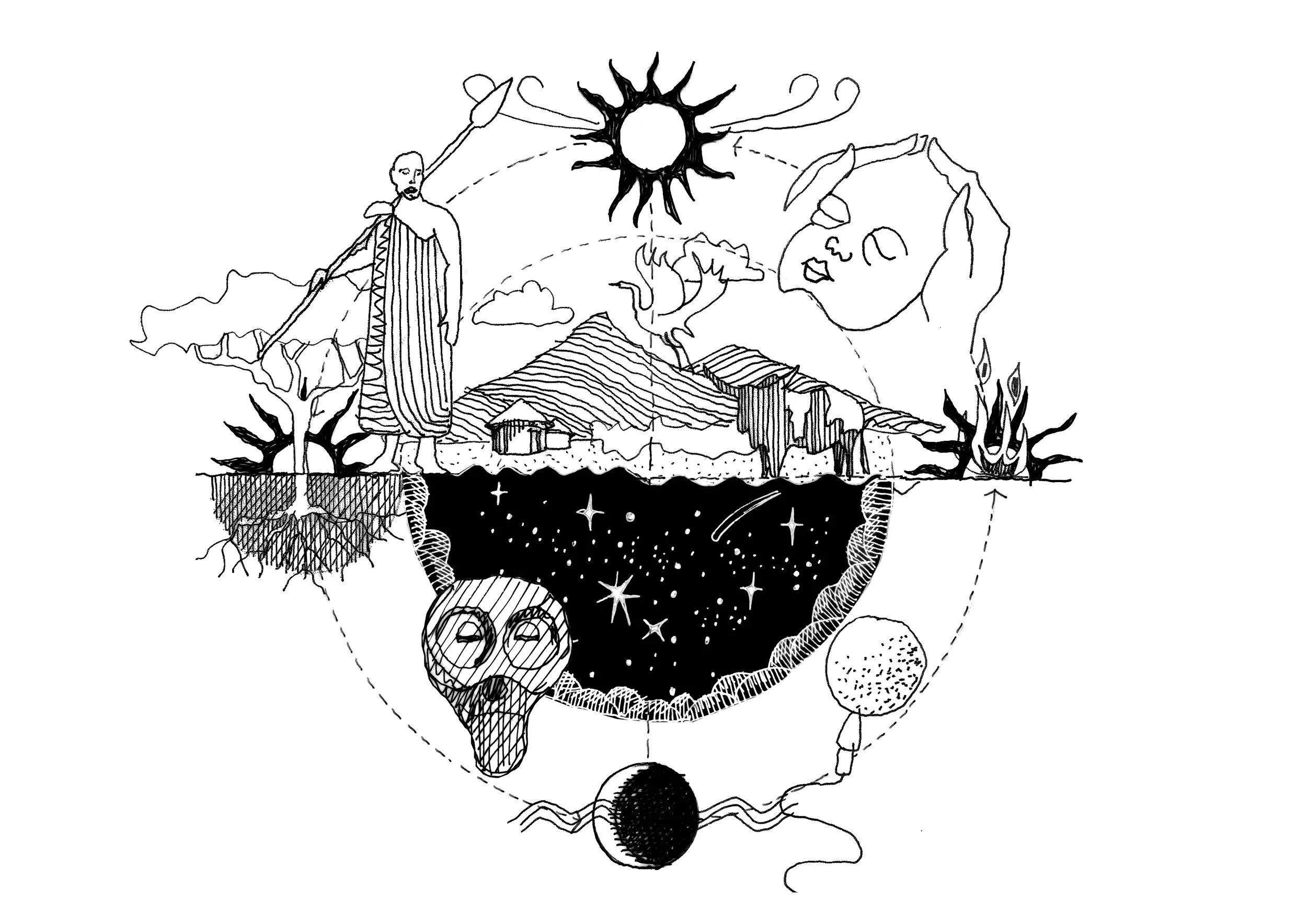 In the Dagara cosmology of Burkina Faso, the Earth is seen as the dreaming body of the Creator, and humans are dream-fragments born to fulfill specific soul contracts.